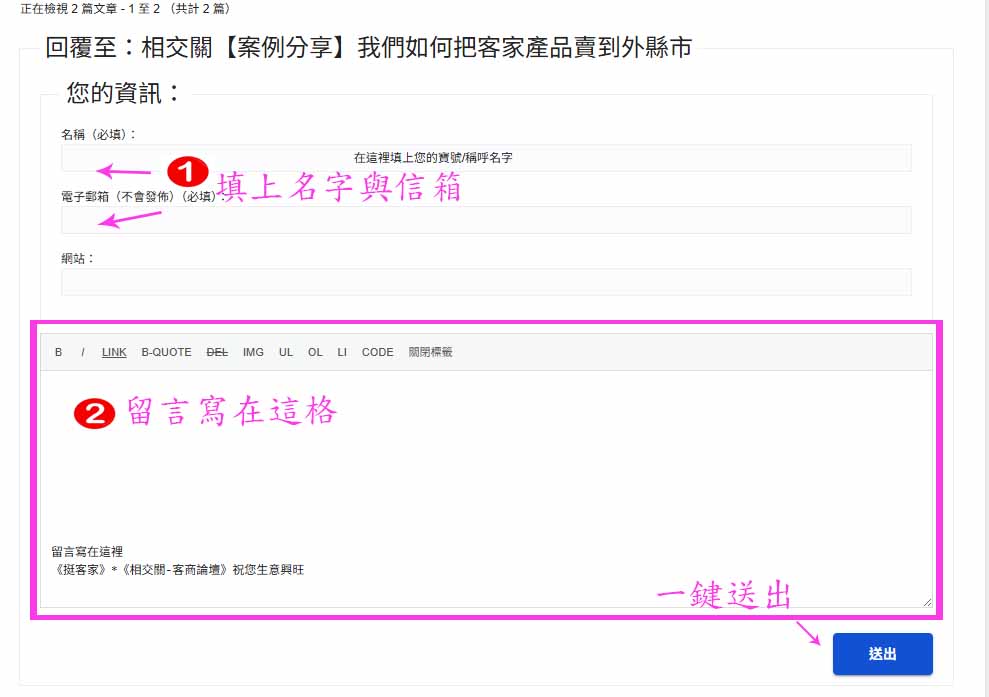 一、留言要寫eMail,但不會顯示,不會影響個資。